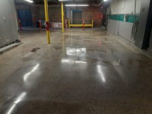 Mid Polishing process: Floor in process and starting to shine. *In this situation we managed end user expectations with the common goal of “function” over “form”