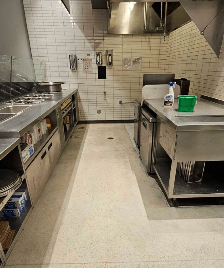 This restaurant faced challenges with its existing failing floor, which was posing safety risks and hindering daily operations. To address this issue, CustomCrete decided to install a new durable and resilient urethane cement floor, capable of withstanding heavy foot traffic and food preparation activities