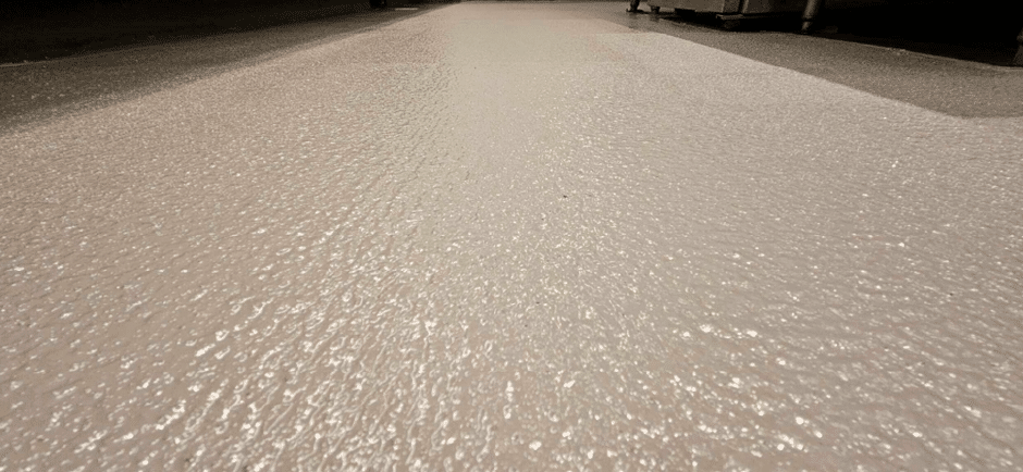 2. Floor Removal and Installation: CustomCrete removed the existing failing floor and installed a new urethane cement floor. Installation took over three nights. During which, the installation team encountered unexpected challenges that reduced work hours to complete their scope. Despite these challenges, they adapted quickly and appropriately to ensure the project stays on track.
