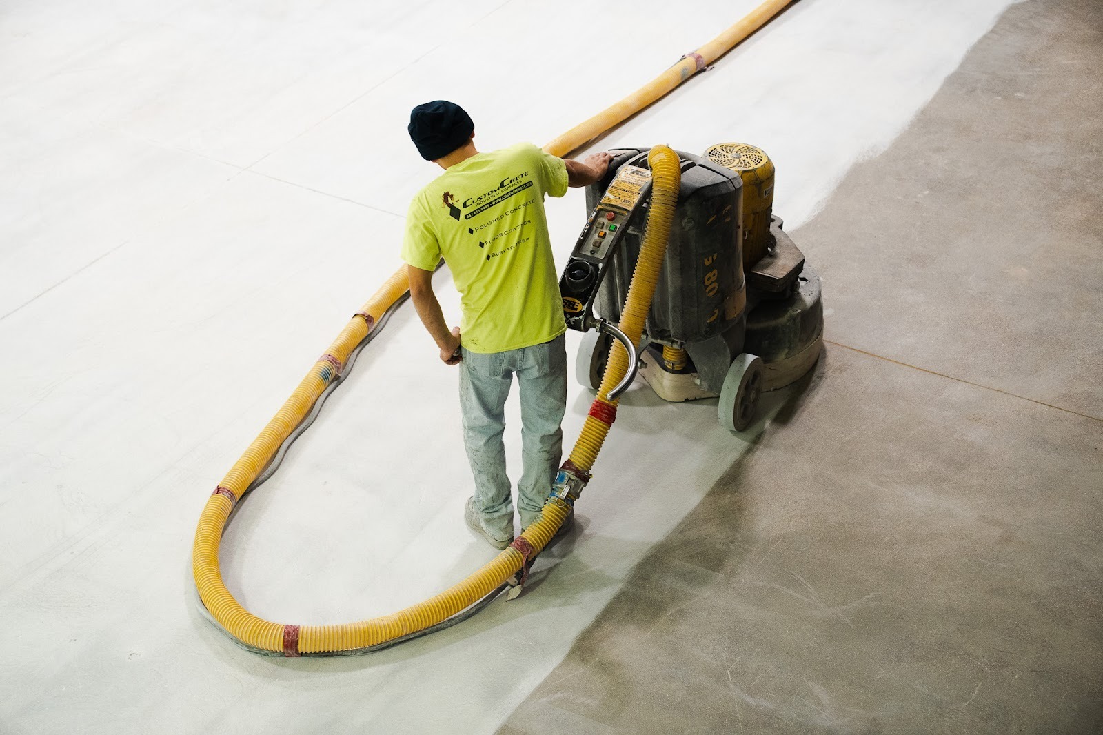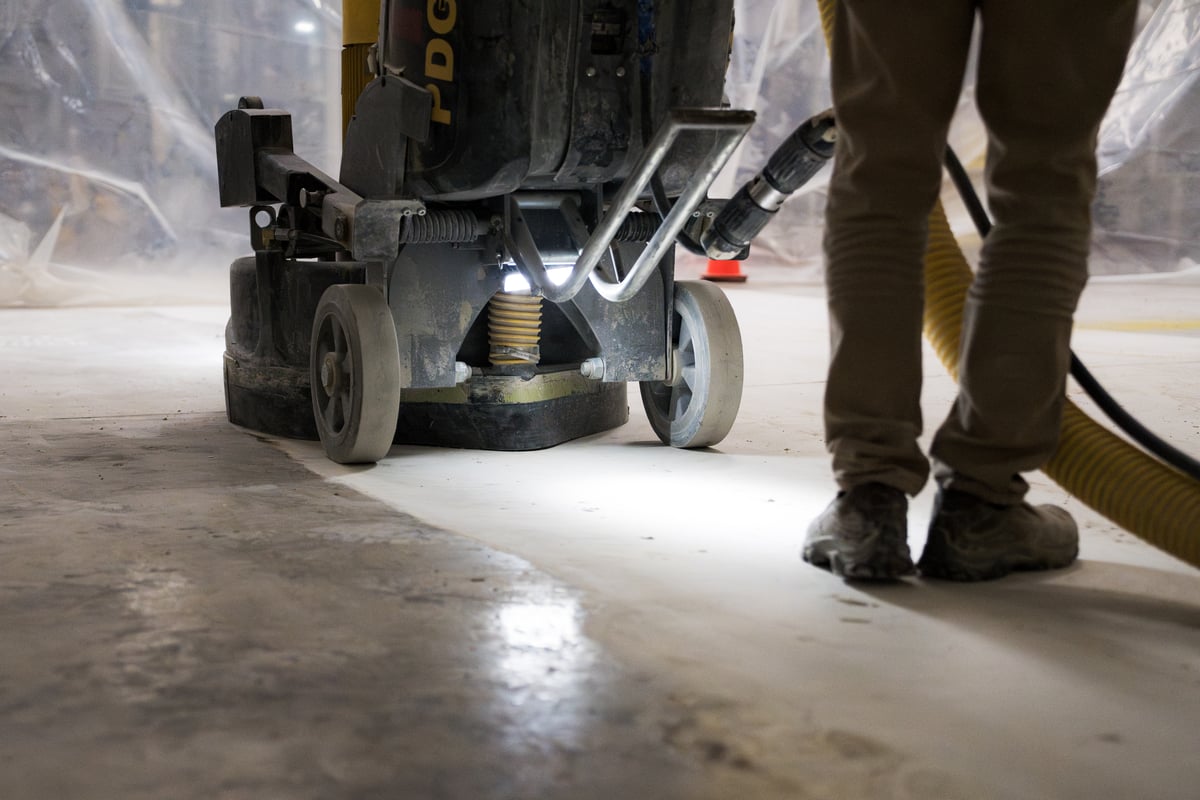 - Industrial grinding equipment operating across the floor