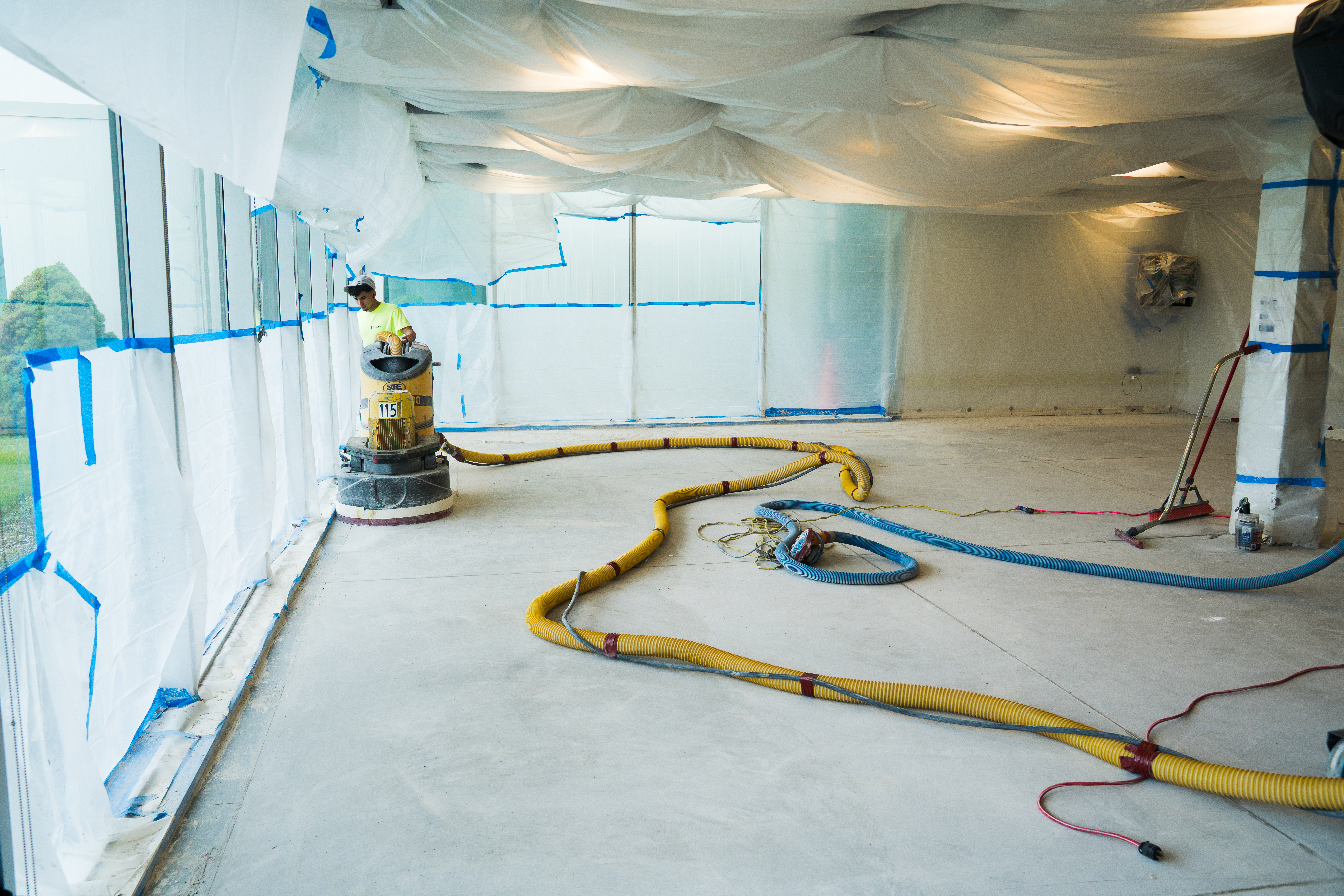 Our equipment allows us to prep around edges, walls, columns, and tight spaces—ensuring full coverage, not just open areas.